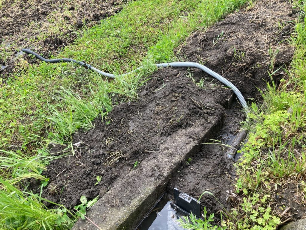 色々考えた結果、田んぼのすぐ上まで来ている埋まった側溝から水を入れることにしました。