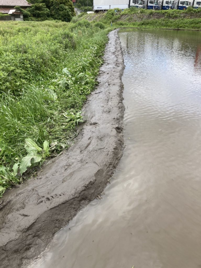 2枚目の田んぼは、畦が低くて水がたまらないので、土を高く盛り上げて畔を塗りました。