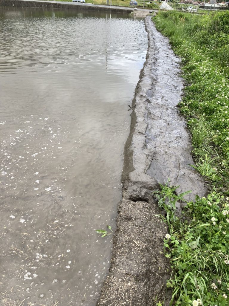 道路向かいにある2枚目の田んぼは、長年草刈りのみしてきた影響からか、土が多く、水路からは水が上手く入らない状態でした。