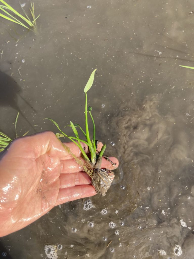 所々、代かきで取りきれなかったコナギが根を張っていたので、ついでに手で除草しました。