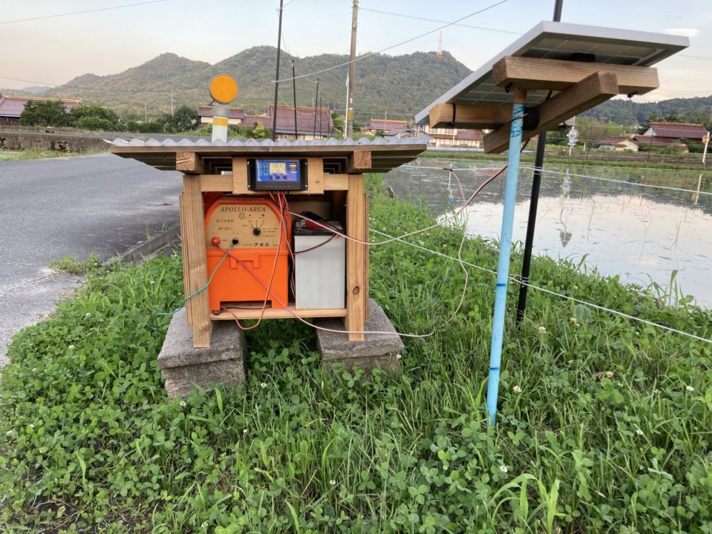 田んぼと畑の周りに電気柵を設置を設置しました。