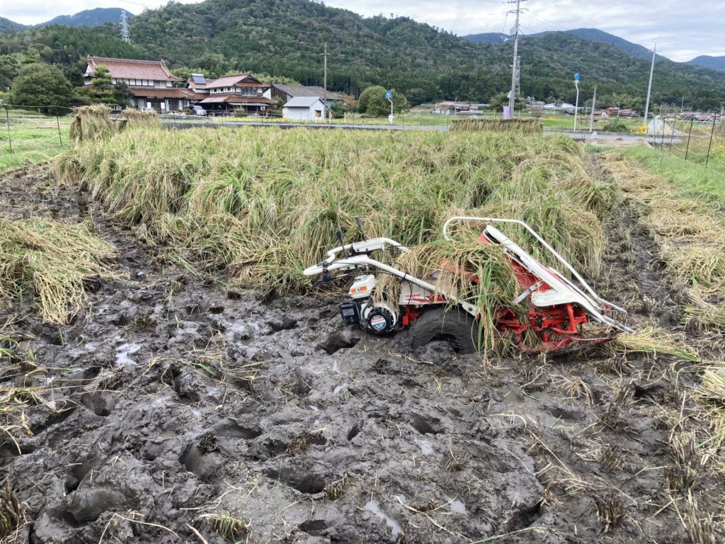途中、田んぼが渇いていない場所があり、バインダーがはまってしまいました。