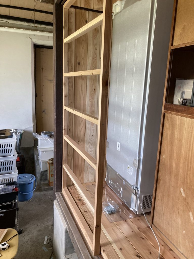 まずは、引き戸を外して、角材で枠を作りました。