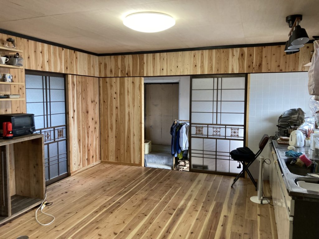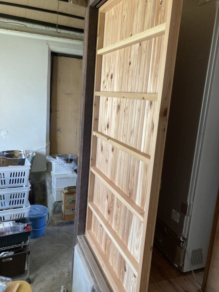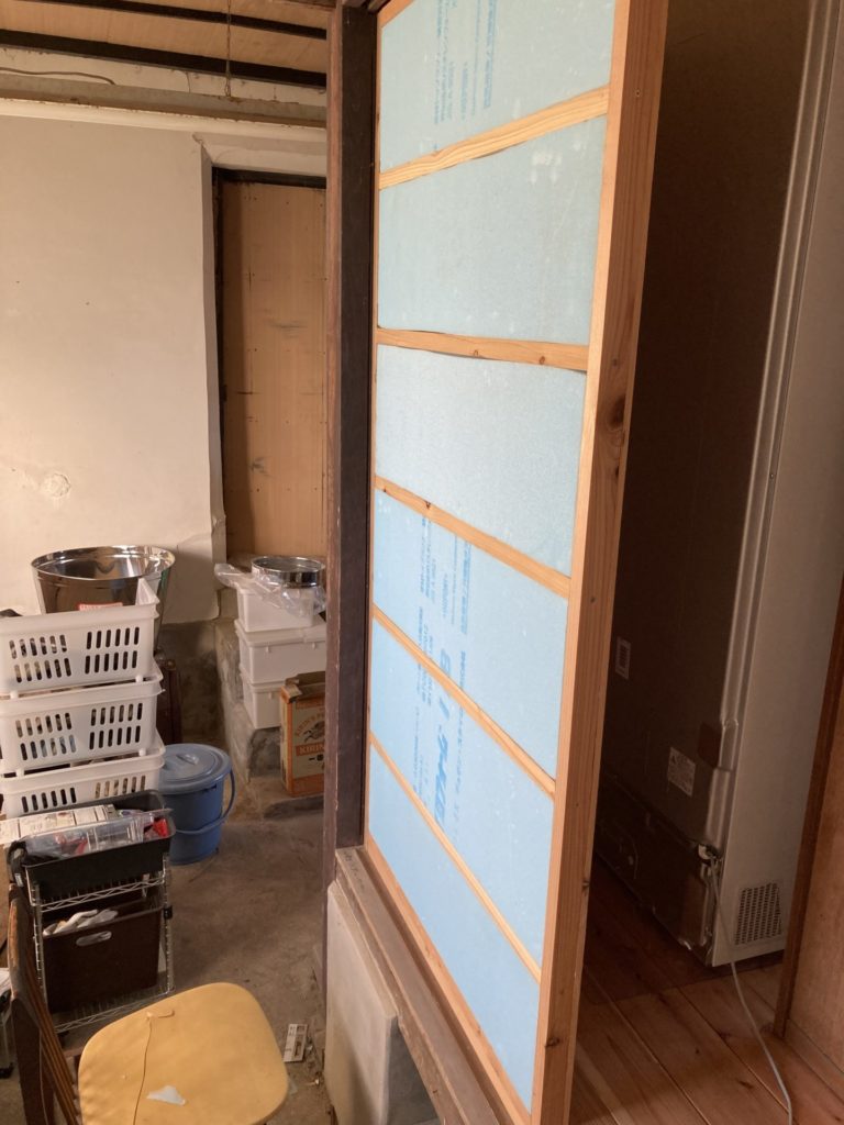 近々、薪ストーブを設置予定なので、引戸を壁に作り変えて設置場所も作りました。