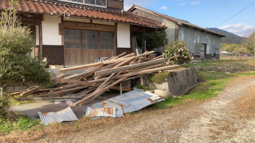 家の前の農道が舗装工事される関係で、軒先の小屋を解体しました。