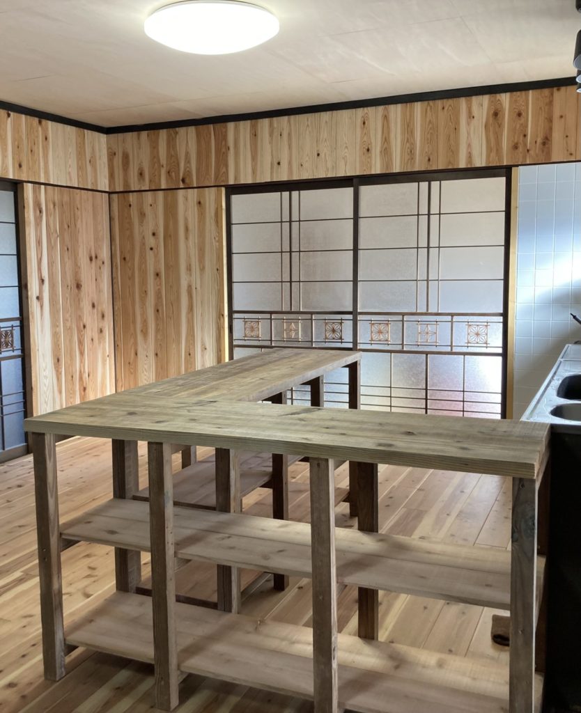 捨ててしまうのは勿体無いので、使えそうな材料を集めてキッチンカウンターをDIYすることに。