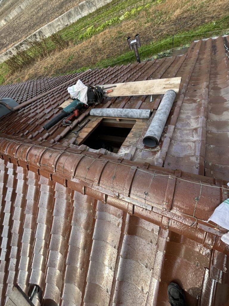 瓦を外して、穴を開けて、