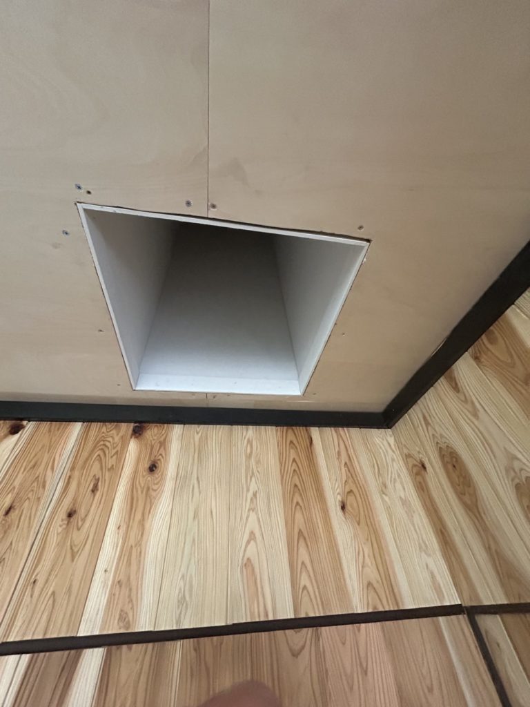色々とDIYで作ってきましたが、火災や雨漏りが心配なので、プロに設置していただきました。
