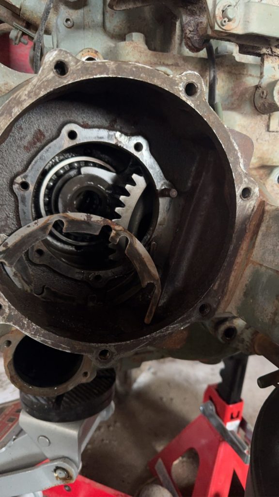 取り外すとなると、ミッション部分の大掛かりな解体か、上部か後方から分解して取り外していくかが必要じゃないか?とのことでした。